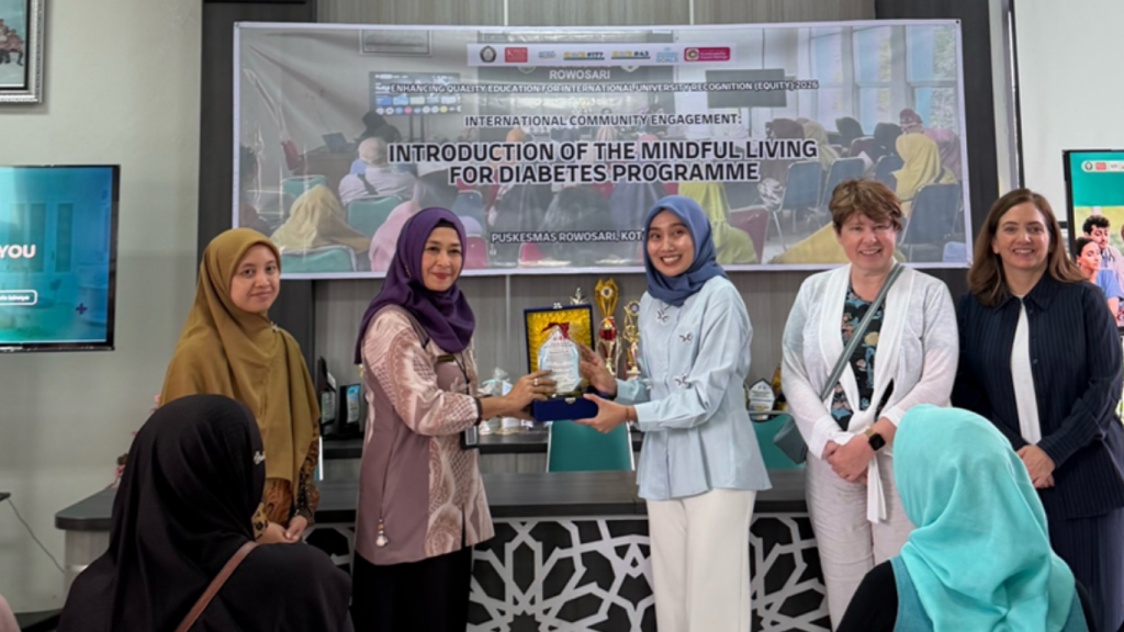 SEMARANG, 27 January 2026 — Diponegoro University (UNDIP), through its EQUITY Community Engagement Programme 2026, conducted an International Community Engagement activity entitled “Introduction of the Mindful Living for Diabetes Programme” at Rowosari Primary Health Centre, Semarang. The activity marked the initial phase of a community-based psychoeducation and mindfulness programme designed for patients with Type 2 Diabetes Mellitus (T2DM) in primary healthcare settings.